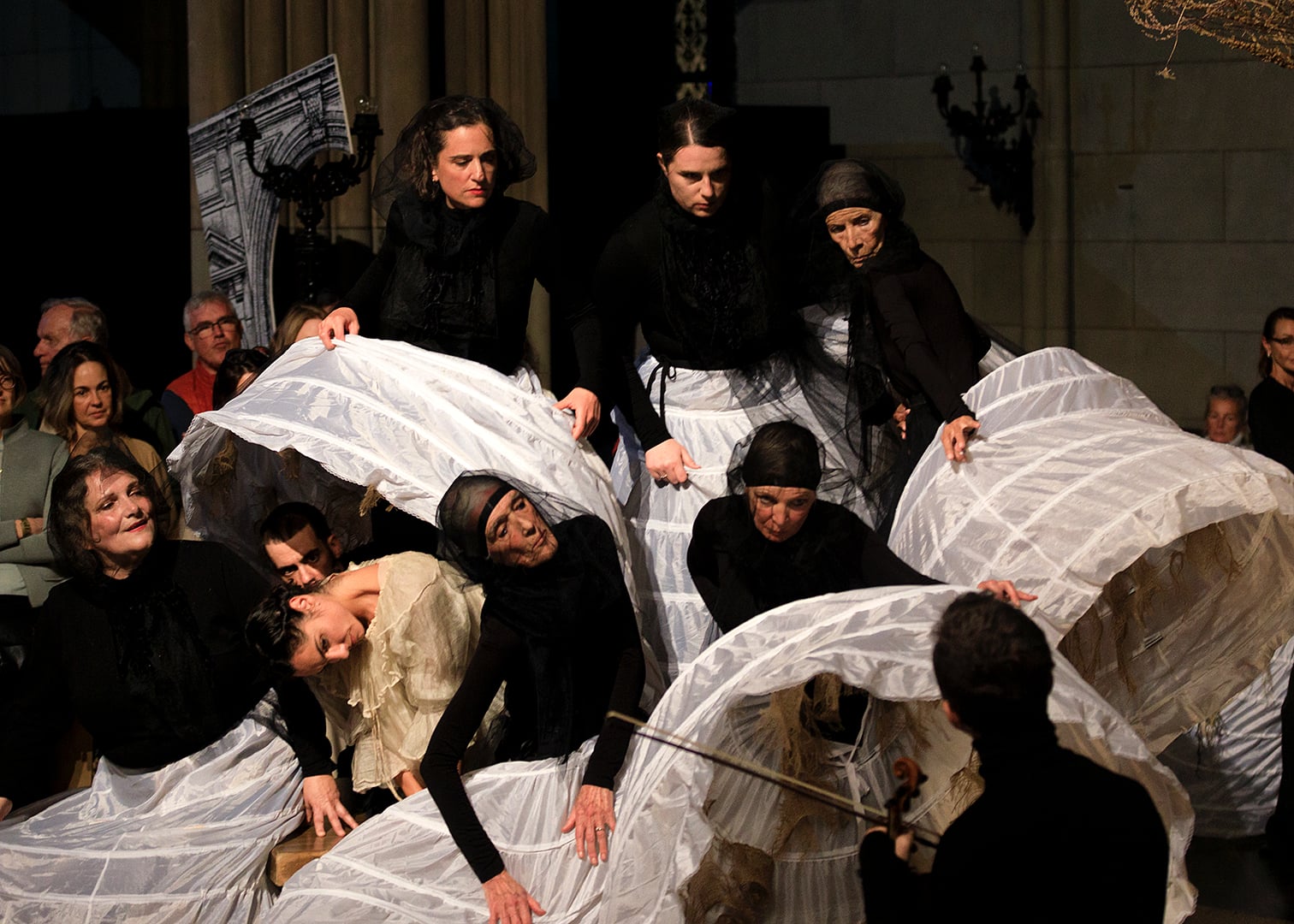 Accompanied by the music of Vivaldi, J.S. Bach, P.Glass, Carl Orff and others, the piece paints by brush strokes the fascination of a century between church and sins.